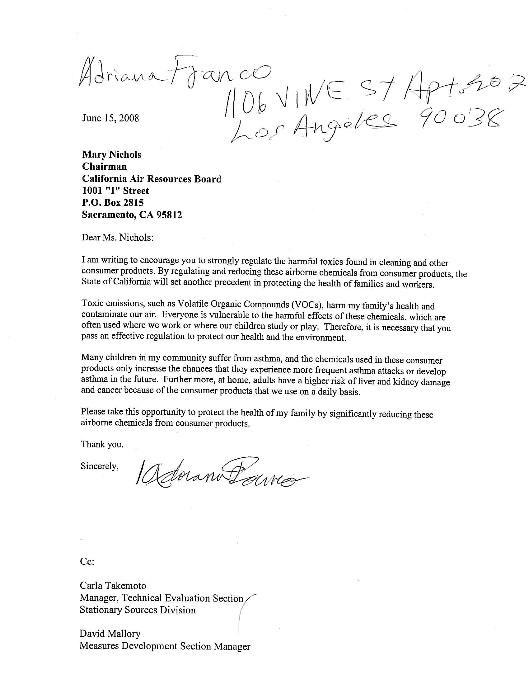 | 1 | Ray, Linda, | Statement for CARB Meeting | 45 Day | 2008-07-01 16:05:57 | |